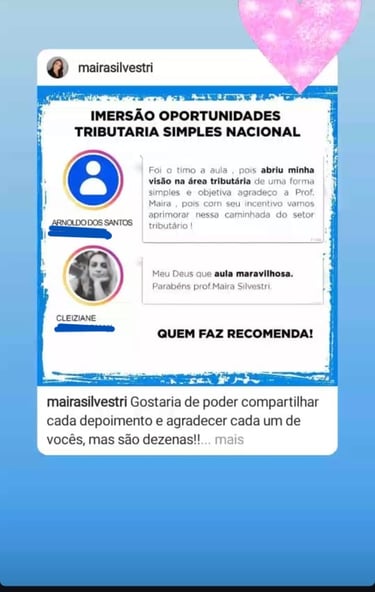 Responsável por idealizar o “Gestão Fiscal Descomplicada”, programa que já impactou centenas de profissionais que buscavam mais clareza, autonomia e segurança em suas rotinas. Recentemente criou o "Método Tributário de Autoridade", que se dedica a formar especialistas respeitados na área, consolidando seu legado como uma referência estratégica no setor tributário.
